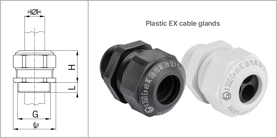 AGRO 플라스틱 방폭 케이블그랜드 - synthetic cable glands increased safety Ex e II