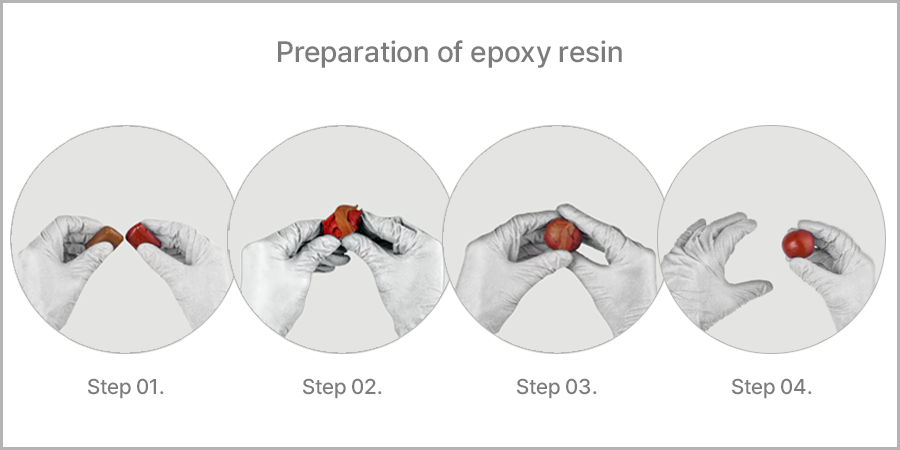 Step4. 섞이게 되면 레진이 딱딱해지기 때문에 레진 화합물을 30분이내에 사용하고 피부에 화합물이 묻지 않도록 조심해야합니다.