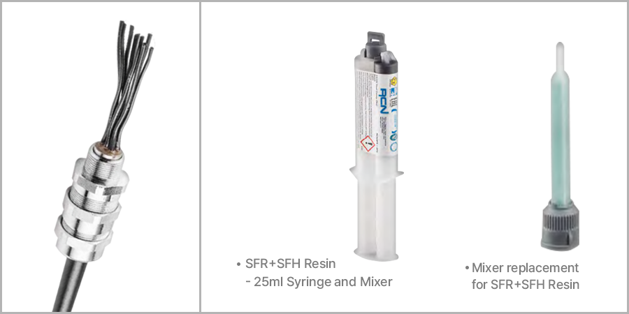 컴파운드 케이블 그랜드(Liquid) 구성 - 두 종류의 레진이 포함된 Bi-Syringe 와 Mixer로 구성됩니다.