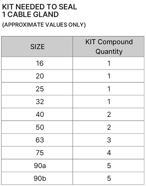 컴파운드 케이블 그랜드(Solid) 구성 - 에폭시 레진은 두개의 종류가 있고 장갑과 함께 패키지로 제공됩니다.