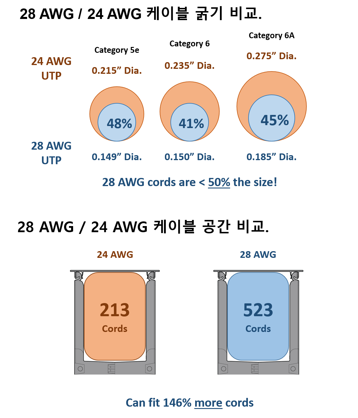 28AWG Solution : 케이블의 굵기가 얇아 공간 활용도를 높일 수 있습니다.